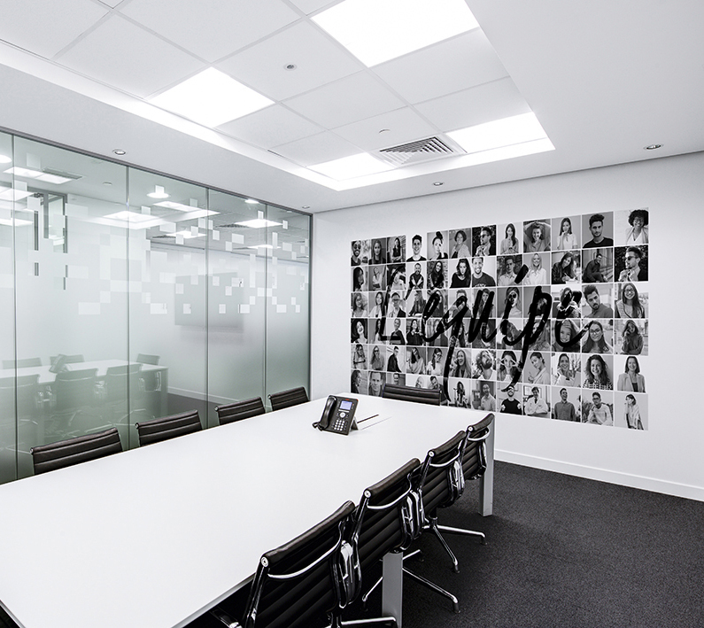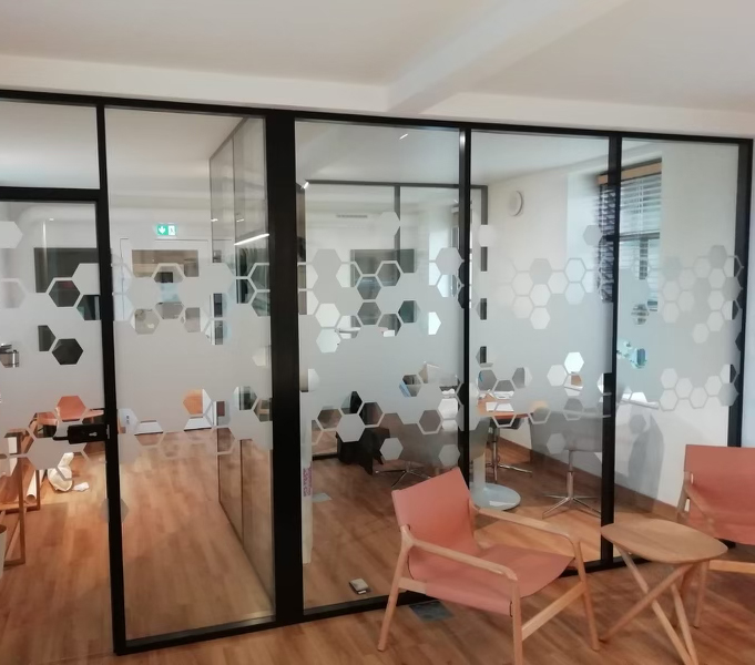 On a choisi une densité de film dépoli qui permet à la fois d’assurer une certaine discrétion et une suffisante luminosité pour ne pas se sentir enfermé dans la salle de réunion.